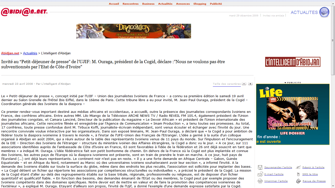 Invité au “Petit-déjeuner de presse” de l’UJIF: M. Ouraga, président de la Cogid, déclare :”Nous ne voulons pas être subventionnés par l’Etat de Côte d’Ivoire”